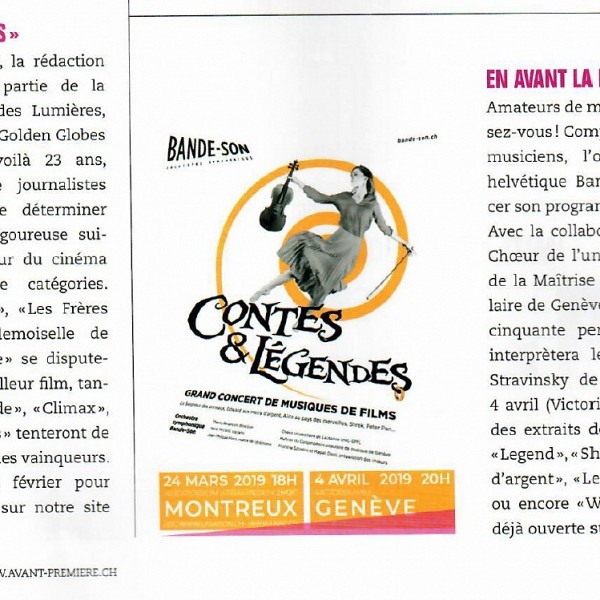 Pour la saison 2019, l'Orchestre symphonique Bande-Son, augmenté du Choeur de l'université de Lausanne UNIL-EPFL et la Maîtrise du Conservatoire populaire de Genève, a rendu hommage aux plus grands films de "Contes & Légendes" appelés aussi "Fantasy Movies".